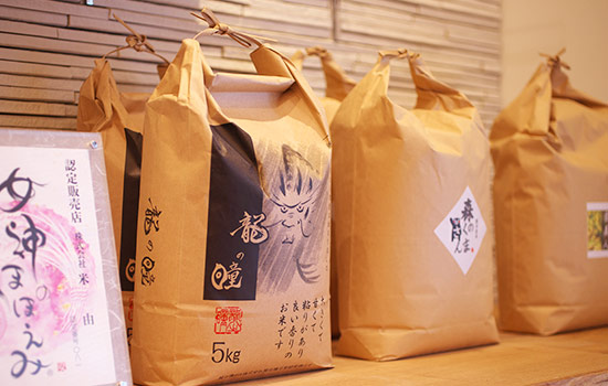 当店では、五ツ星お米マイスターの資格を持つ店主が厳選する全国の様々な銘柄のお米を、ご家庭でもお楽しみいただけるように、通販を行っております。ご自宅用はもちろん、贈り物としても大変喜ばれています。米由(こめよし)オリジナルのセットもご用意していますので、ぜひお買い求めください。